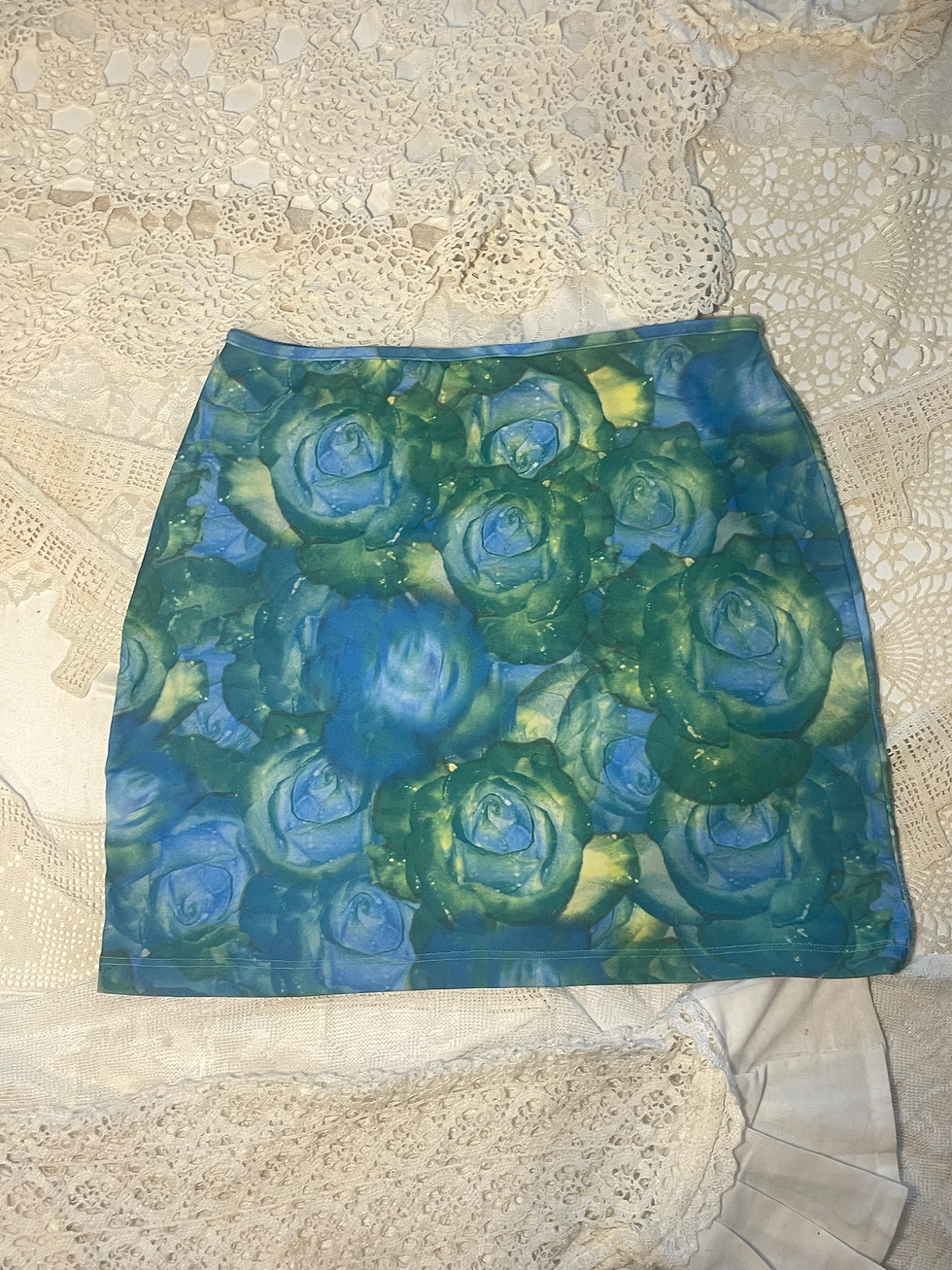 Y2K Baby Blue Floral Silver Hardware Top Small